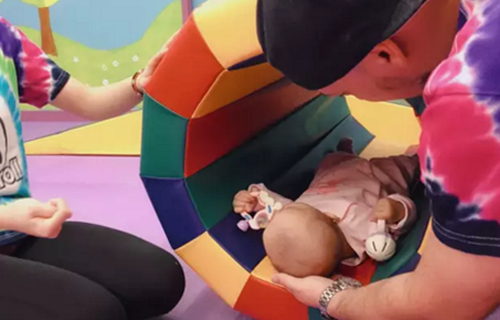 充气滚筒和彩虹伞环节,培养宝宝的空间感及色彩感知;